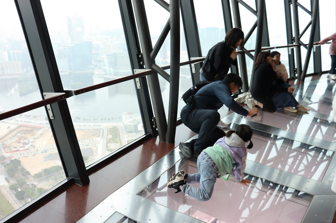 ▼ 가끔은 직원으로 여겨지는 사람들이 시범을 보여주기도 했다. 전 세계 MZ세대들의 랜드 마크로 통한다는 ‘마카오 타워’. 이왕에 왔으니 스카이워크에 도전해보라는 모양이다.