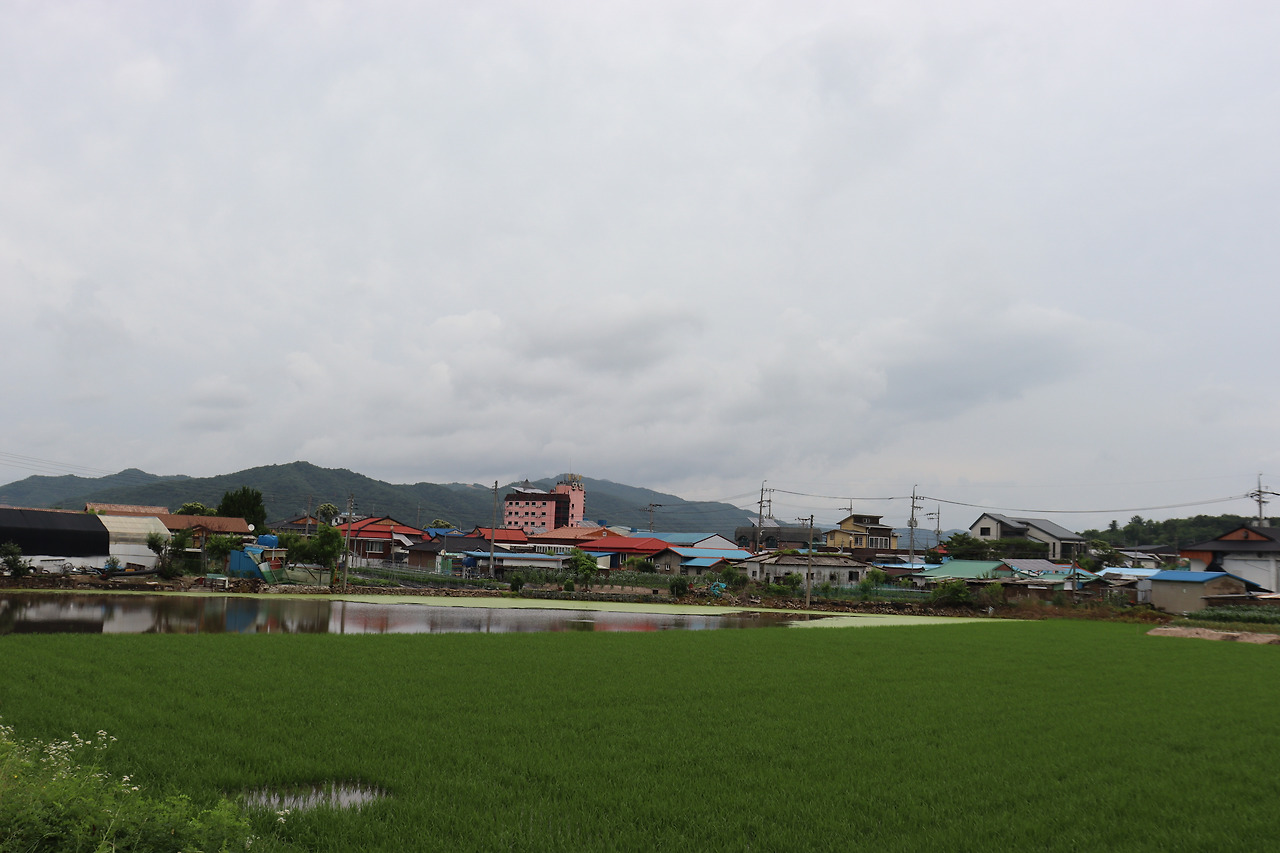 ▼ 오른쪽이 도시 냄새가 물씬 풍기는 시가지라면, 반대편에는 전형적인 농촌 풍경이 펼쳐진다. 뒤를 받혀주는 산은 ‘덕령산(588m)’이 아닐까 싶다.
