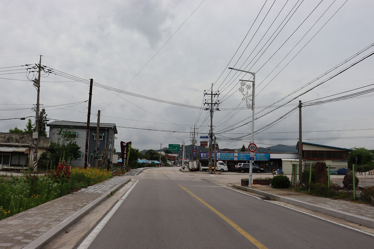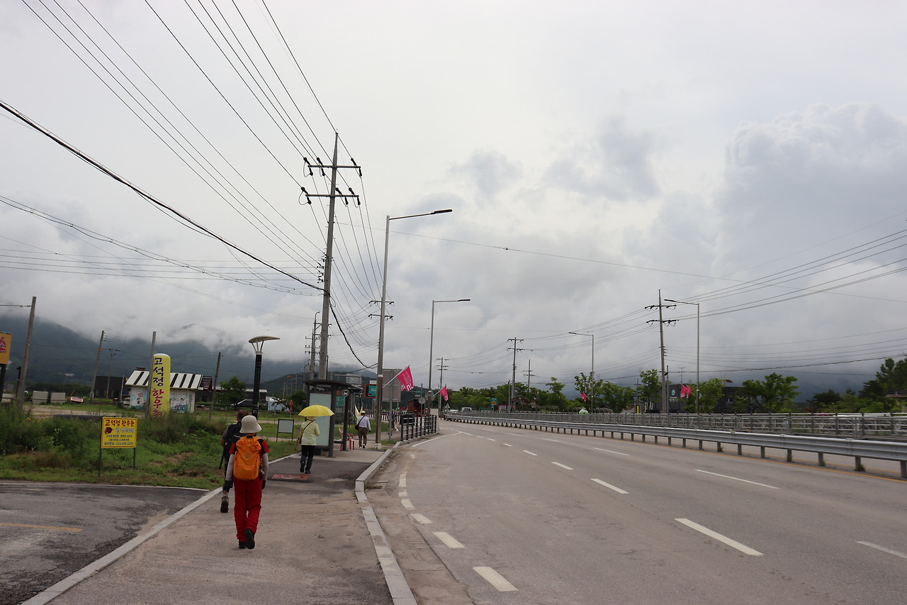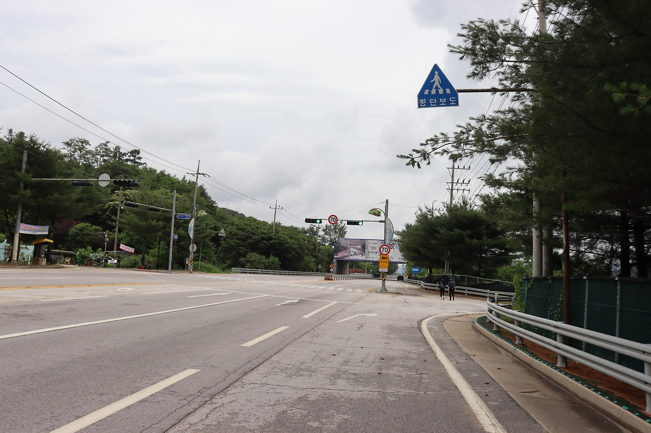 ▼ 이후부터는 4차선인 ‘호국로(국도 43호선)’를 따라간다. 길이 널찍해서인지 오가는 차량들이 하나같이 씽씽 달려댄다. 그런데도 흰색 페인트선 하나로 차도와 인도가 구분되어 있을 따름이다. 목숨을 담보로 걸을 수도 있겠다는 얘기다. 한국관광공사에서 버스로 이동하라고 권했던 이유이지 싶다.