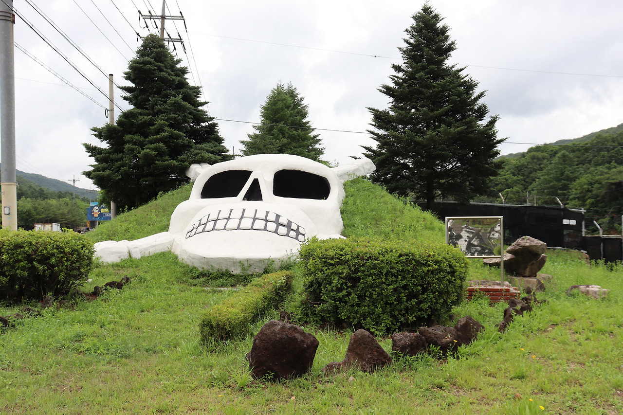▼ ‘백골부대’ 조형물은 버스정류장 근처에 세워져 있었다. 철의 삼각지 ‘김화축선’에서 조국을 지키기 위해 목숨을 바친 선배 전우들의 백골혼을 되새겨 조국통일의 염원을 기리고저 세웠단다. 참고로 백골부대는 6·25전쟁 당시 죽음을 불사하는 조국수호의 정신으로 전공을 세운 부대로 명성이 높다. 백골상은 현재 철원군의 랜드마크로 인식되고 있단다.
