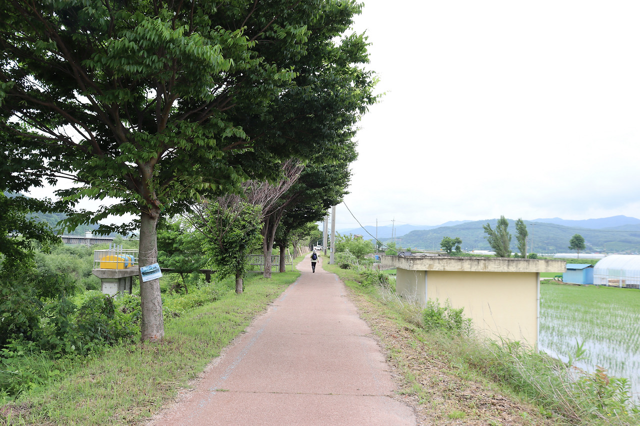 ▼ 농로를 따라 북진한다. 불당천의 둑을 저만치에 놓아두고 왼쪽으로 에돌아가는 모양새이다. 둑 위로 길을 낼 수가 없었던 모양이다.