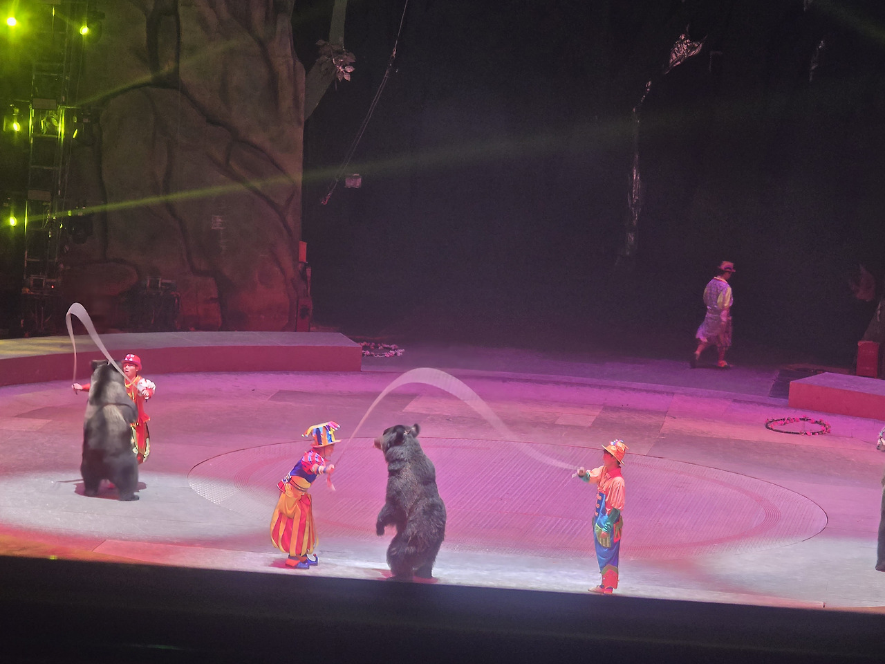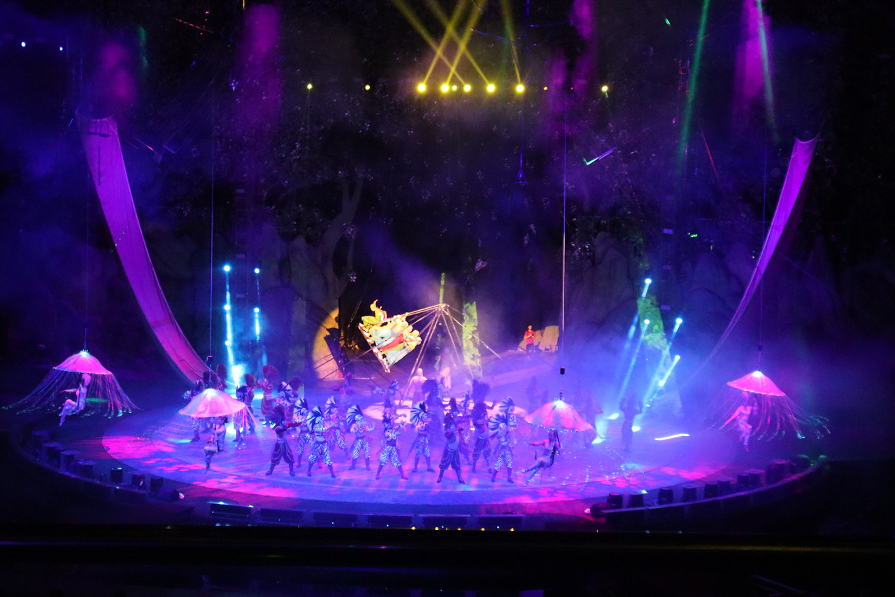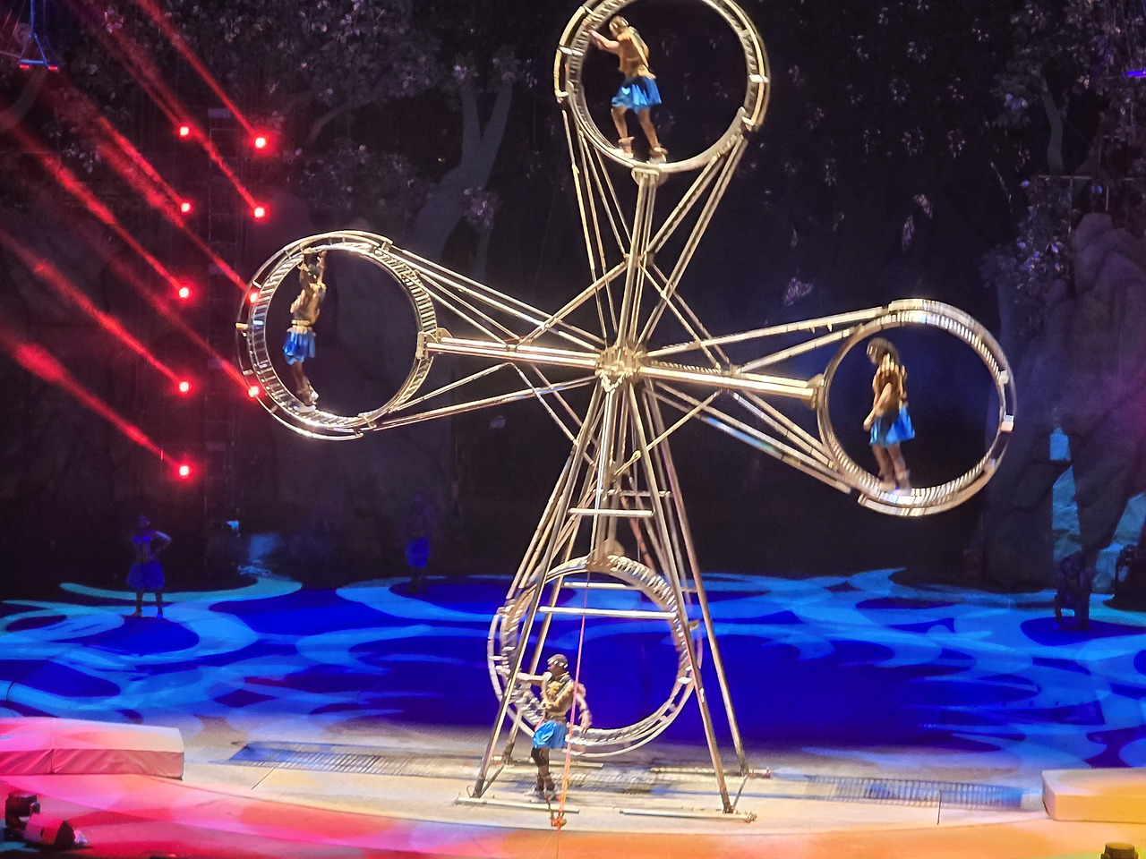 ▼ 드디어 공연이 시작됐다. 공연은 단순히 기예만 보여주는 게 아니라 창조적인 음악, 연출, 곡예 등 여러 가지 예술요소를 혼합해 ‘환상과 같은 무대 효과’를 연출하고 있었다. 스토리가 있는 극을 만들어가며 상상의 나래를 펼치게 해 준다고나 할까?