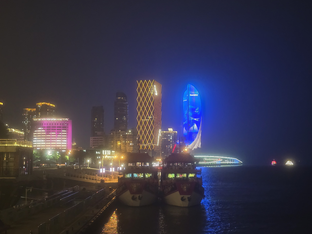 ▼ 항구에 도착해 유람선에 오른다. 배는 꽤나 컸고 관광객들도 무척 많았다. 이때 노을로 물들어가는 샤먼의 멋진 풍경도 눈에 담을 수 있다고 했다. 하지만 시간이 조금 지체된 탓인지 우리에게는 그런 행운이 주어지지 않았다. 어쩌겠는가. 허락된 야경이라도 실컷 구경할 수밖에.