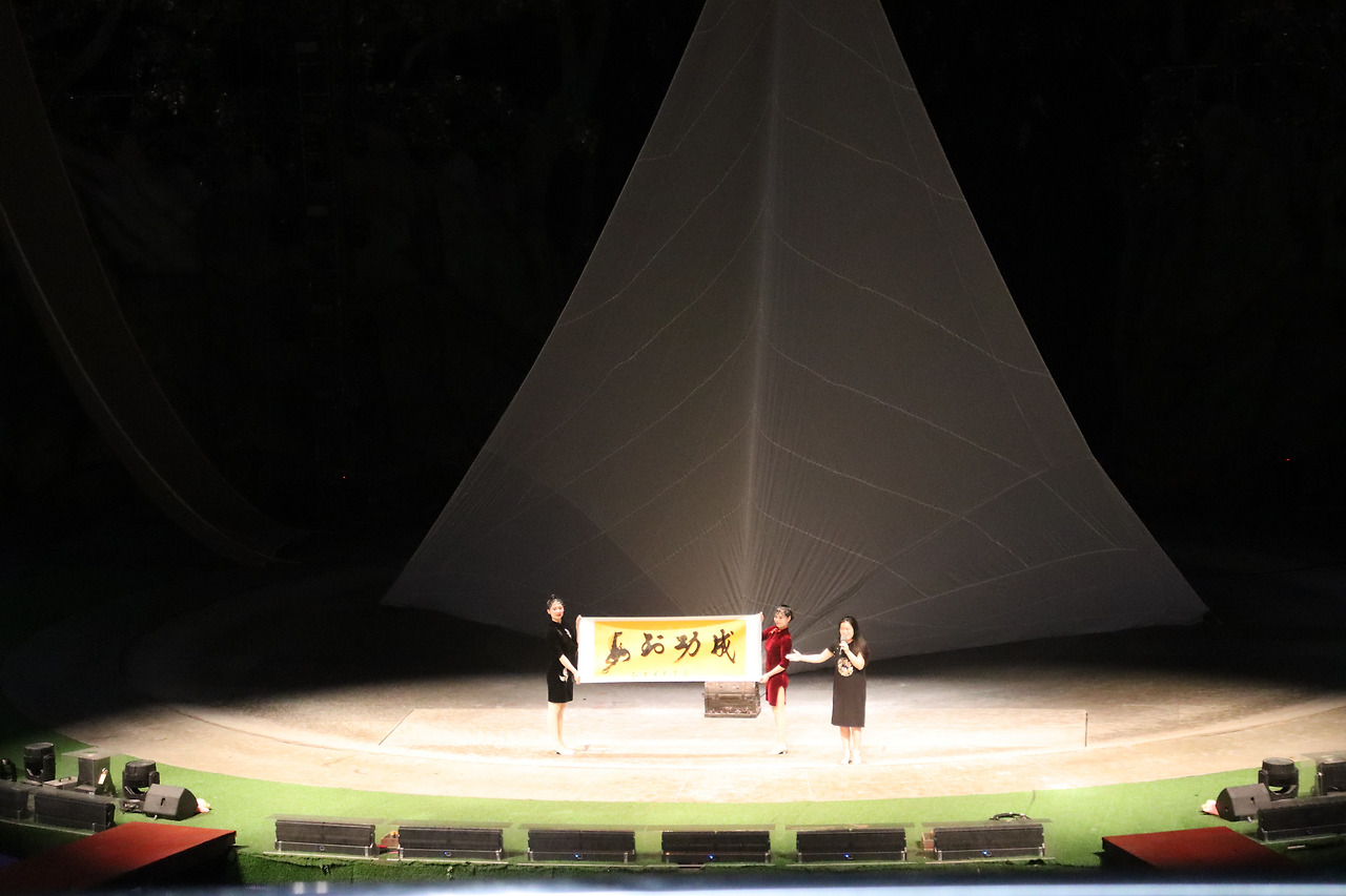 ▼ 중국에서 가장 먼저 서양 문물을 받아들였다고 해도 ‘샤먼’이 중국 땅임은 부인할 수 없다. 장사(商)의 나라답게 공연을 시작하기 전 서예가가 등장해 글씨를 쓴다. 물론 판매용이다.