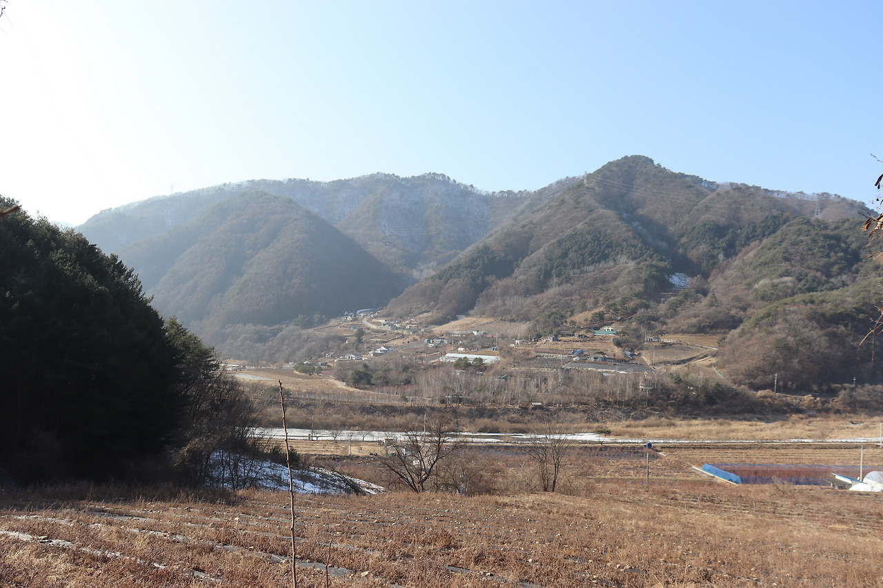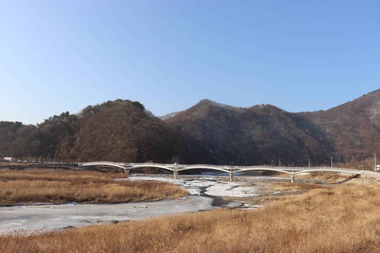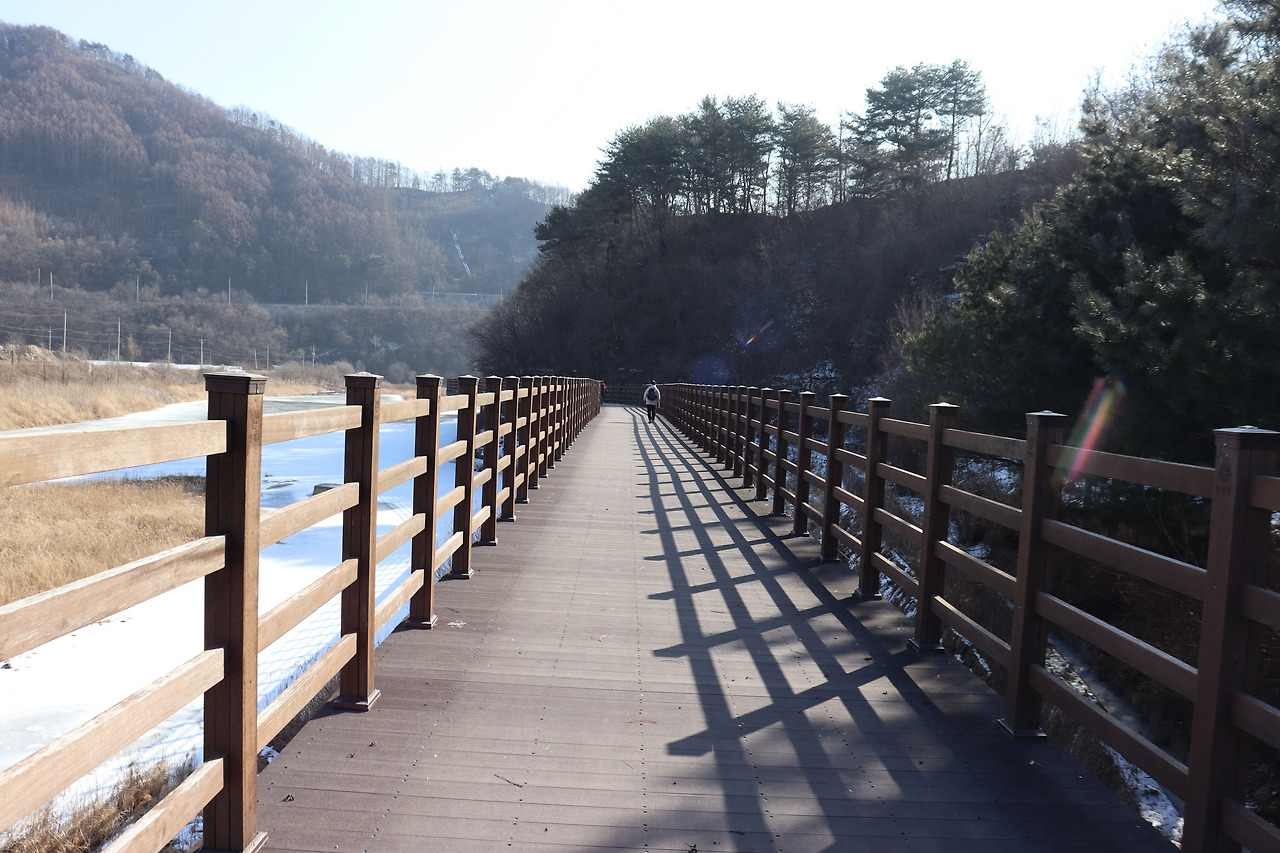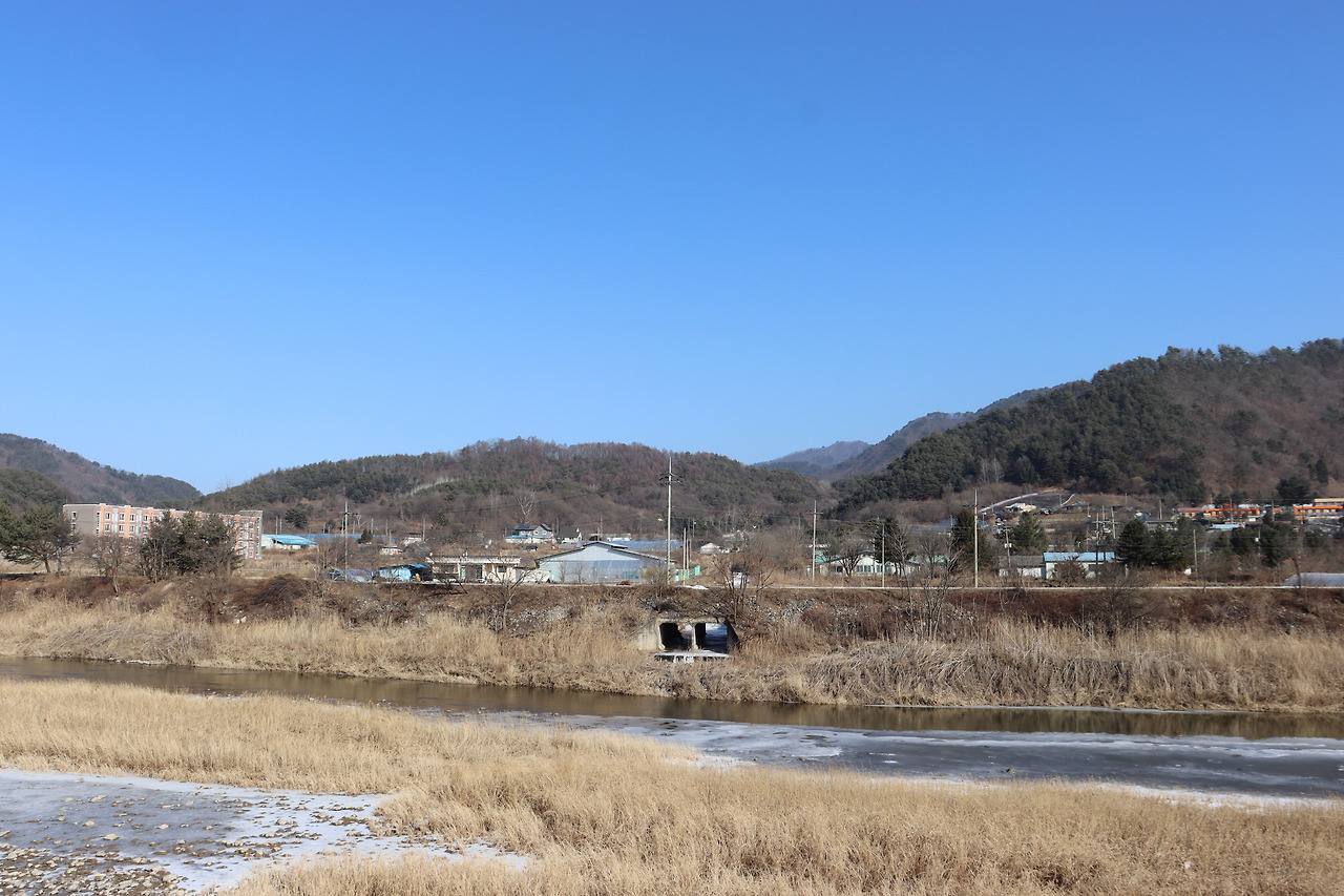 ▼ 또 다시 인북천 둑길을 따라간다. 인삼밭과 인북천 사이로 쭉 뻗은 길을 걸으며, 맑고 시원한 공기를 가슴 깊이 들이켜 본다. 겨울 날씨답지 않게 온화한 기운이 가슴 밑바닥까지 파고든다.