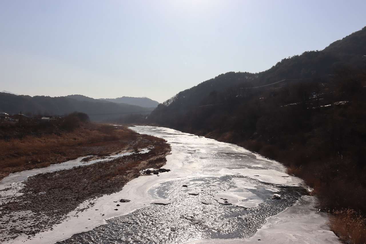 ▼ 인북천 물길은 쉼이 없다. 하지만 오늘은 얼음 속에 갇혀버렸다. 멍하니 물 흐르는 소리만 들어도 시름이 사라져버릴 터인데 아쉽다.