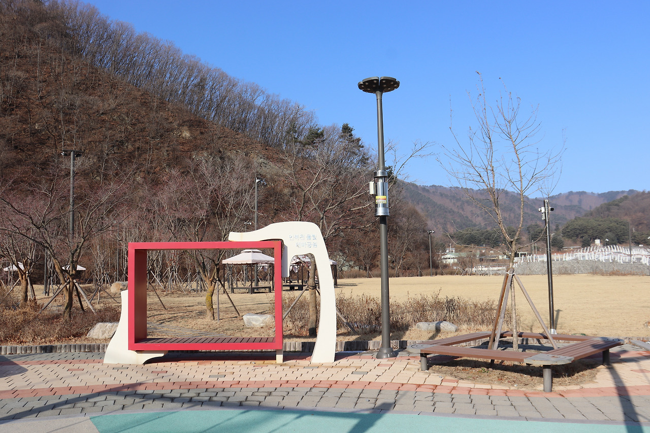 ▼ 다리를 건넌 다음에는 인북천을 오른쪽으로 바꿔 차고 간다. 길은 정비가 잘 되어 있었다. 쉼터를 만들어 놓았는가 하면, 곳곳에 벤치를 놓아 쉬어갈 수 있도록 했다.