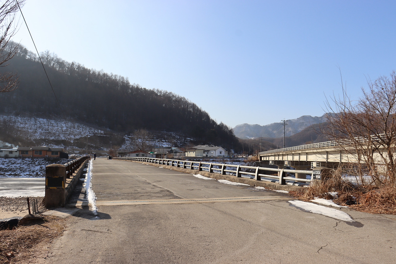 ▼ 다리를 건너면 월학리 ‘띠두루(버스정류장은 뒤뚜루)’. 띠밭이 있었다는 데서 유래된 지명이란다. 이곳도 역시 인북천이 만들어놓은 충적지, 평화의길은 그 충적지를 에돌아가는데, 그곳에 군부대가 들어서 있었다. ‘인제가면 언제 오나, 원통해서 못 살겠네’. 라때 시절, 죽어도 들어가기 싫었던 곳이기도 하다.