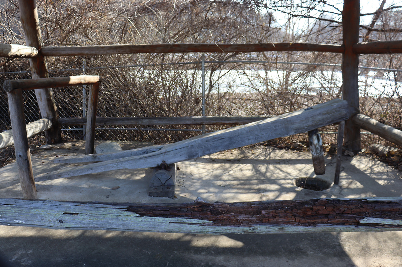 ▼ 디딜방아는 발로 디디어 공이의 상하 움직임을 통해 곡식을 찧거나 빻는 방아이다. 다리, 방아채, 방아공이, 방아확 등으로 이루어지는데, 7~8명의 여인이 하루 두 섬의 쌀을 찧었다고 한다.