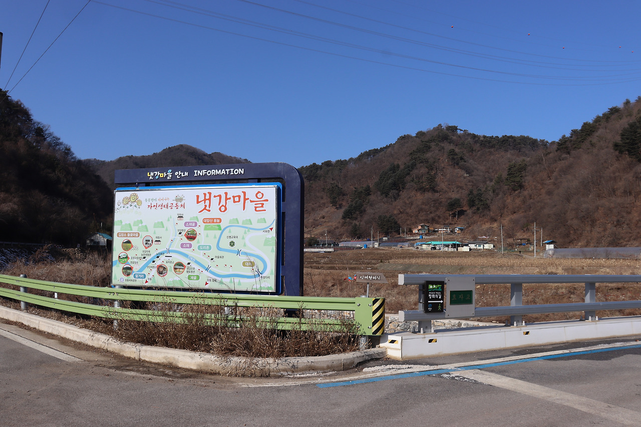 ▼ 이 일대는 ‘냇강마을’로 불린다고 했다. 대암산 자락에 위치한 산촌마을로, 선사시대부터 사람이 정착해 살아온 유서 깊은 곳이다. 대터, 소재골, 도리촌, 말거리, 김장소 등 다섯 개 소부락이 인북천을 따라 형성되어 있으며, 전통문화와 자연 생태가 어우러진 체험 공간으로 운영된다. 봄에는 들꽃과 농사 체험, 여름에는 물놀이와 냇강체험, 가을에는 수확 체험, 겨울에는 민속놀이 등 사계절 농촌 체험 프로그램이 마련되어 있다.
