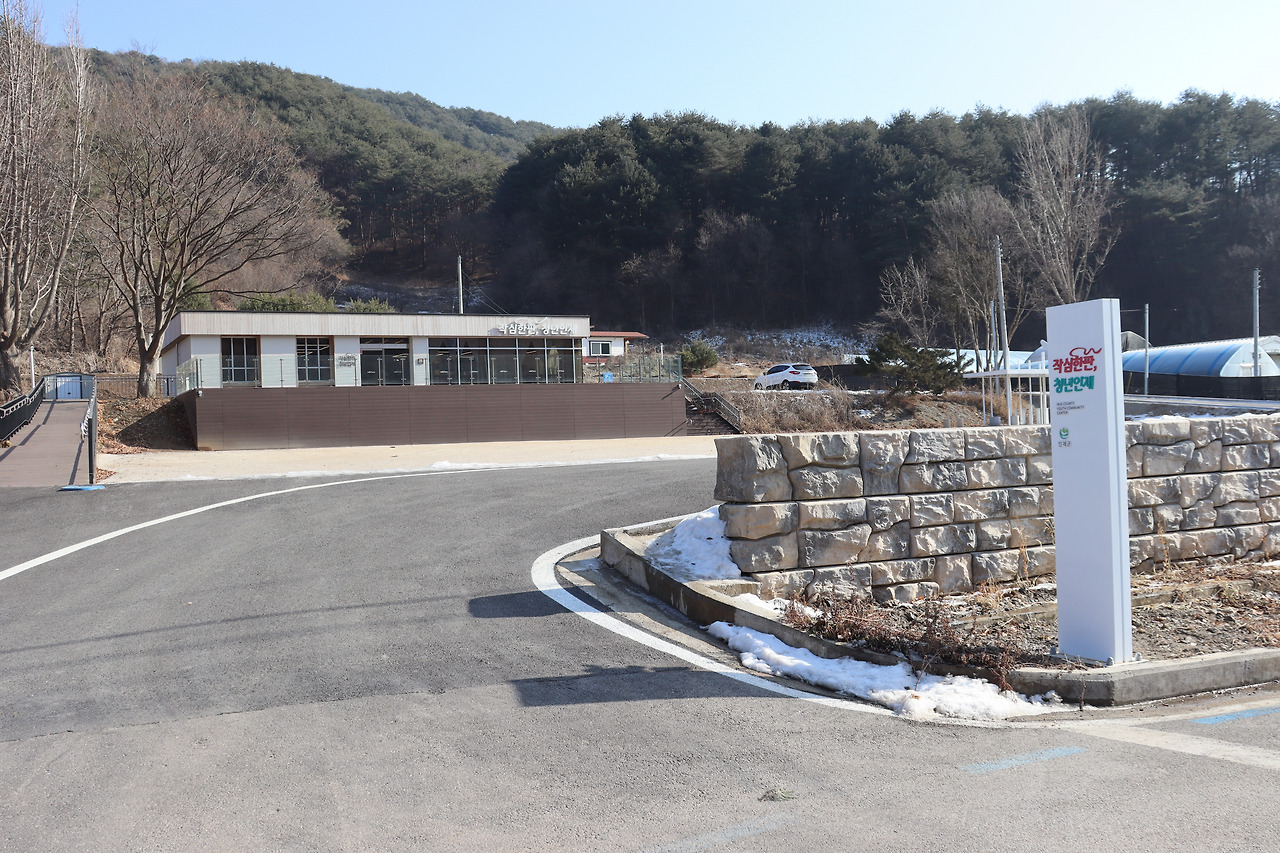 ▼ 13 : 42. 다리 건너, 폐교된 효자분교에는 ‘청년커뮤니티센터’가 들어섰다. 19-49세 청년은 물론이고 인제군민 누구나 무료로 이용할 수 있는 열린 공간이다. 그런데 청년이 49세까지란다. 노령화로 치닫고 있는 농촌의 현실이 적나라하게 반영된 나이가 아닐까 싶다.