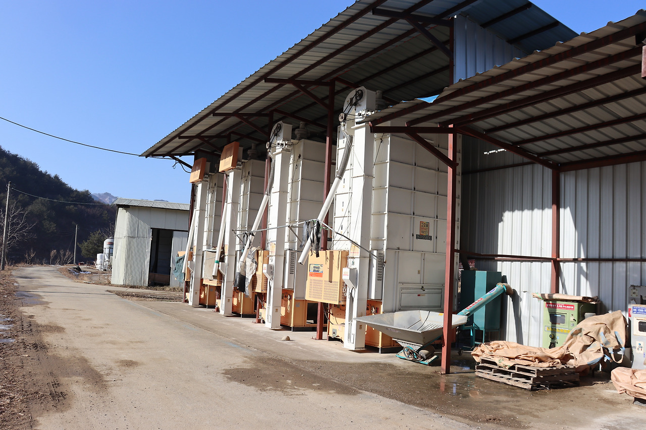 ▼ 11 : 12. 둑길은 인북천 물굽이가 만들어놓은 충적평야를 에돌아가는 모양새이다. 그 중간쯤에 있는 ‘영농조합법인’의 이름도 역시 ‘대바위골’이었다. 그나저나 정미소는 ‘사천동’ 들녘의 넓이만큼이나 컸다. 하긴 인제군 SNS 홍보단은 대바위골을 일러 논농사가 많아 인제군에서 가장 먼저 모내기를 하고 가장 먼저 추수를 하며 추석 제사상에도 가장 먼저 햅쌀밥을 올린다고 하지 않았던가.