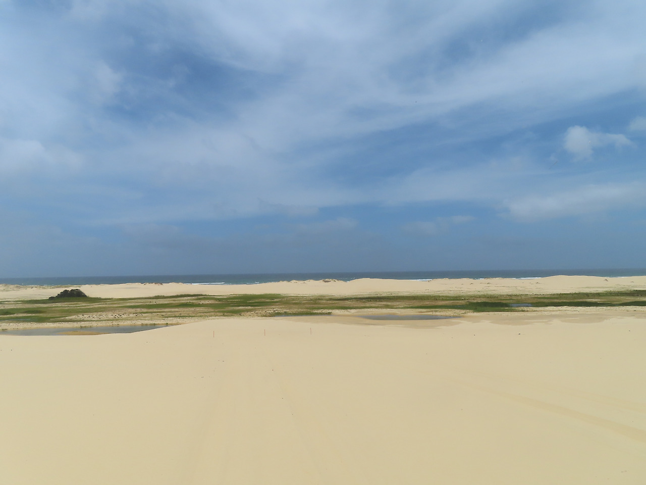 ▼ 슬라이딩 슬로프까지는 한참을 이동해야만 했다. 왼쪽(남쪽)은 바다, 오른쪽에 모래언덕을 끼고 가는 모양새이다.