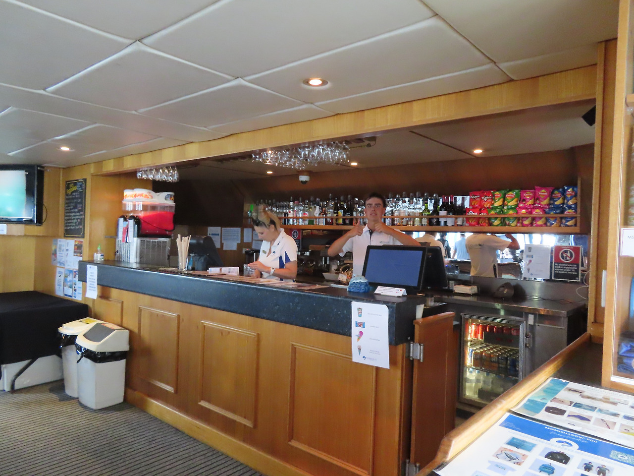 ▼ 선실 내부에 작은 바(bar)를 두고 있었다. 음료는 물론이고 맥주, 심지어는 위스키까지 판다.