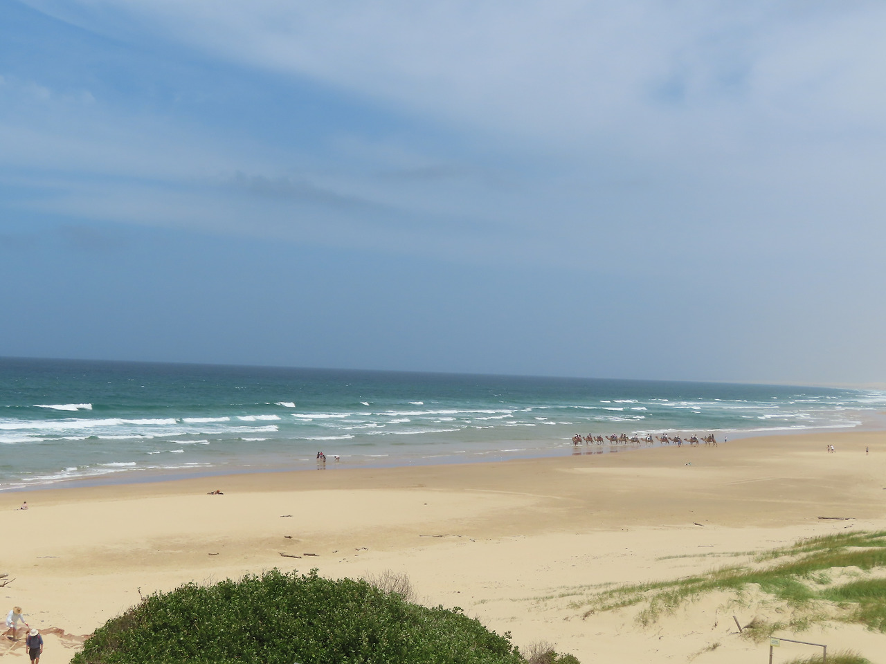 ▼ Google 지도는 ‘스톡턴비치(Stockton Beach, 또는 Birubi Beach)’로 적고 있었다. 낙타타기(Camel Rides)체험이 유명한지 두어 팀이 길게 줄을 지어 이동하고 있었다.