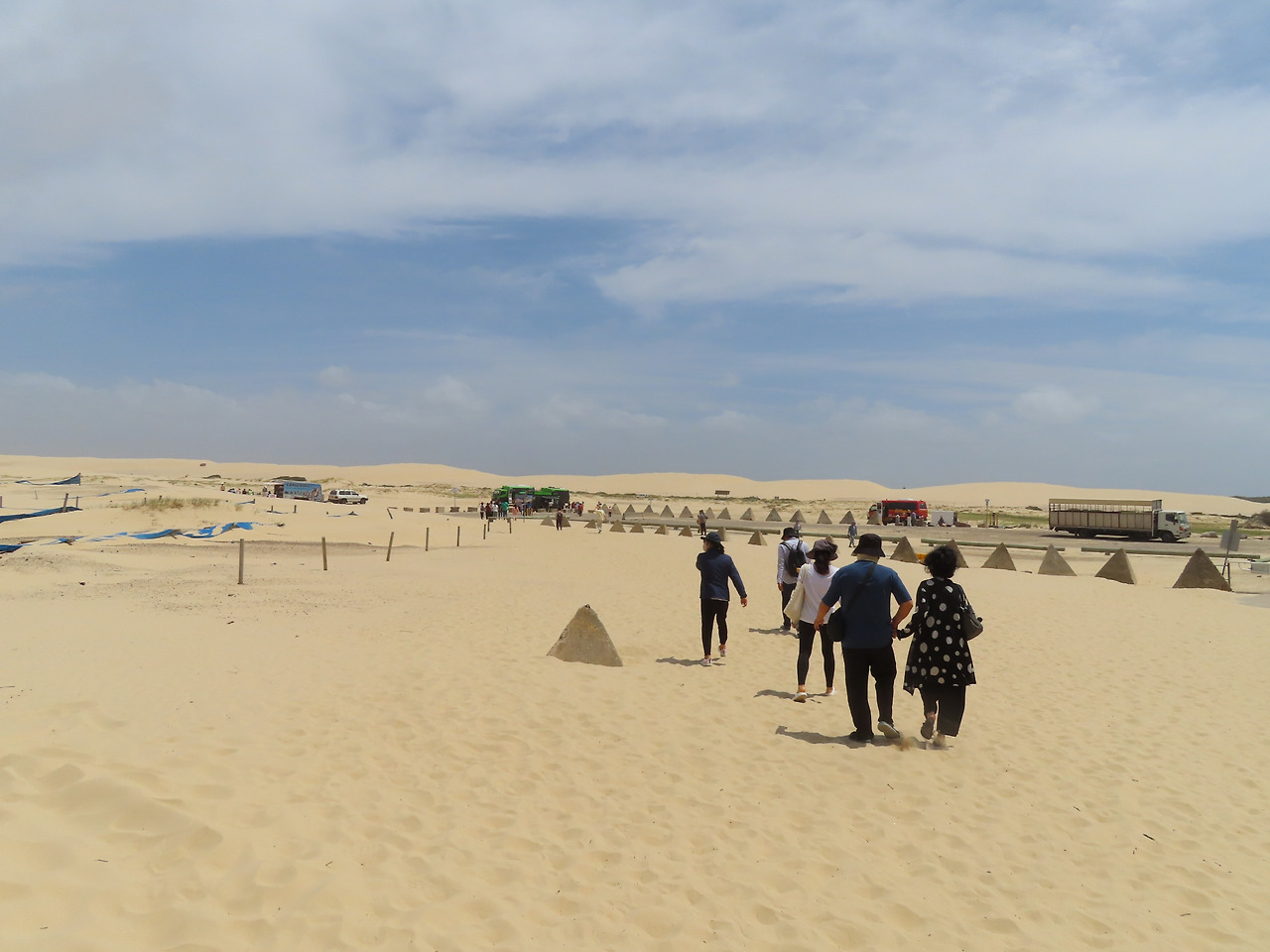▼ 차에서 내린 첫 느낌은 모래의 입자가 무척 가늘다는 것이다. 모래가 아니라 숫제 흙으로 느껴질 정도이다. 그러나 걸음을 옮겨도 흙먼지가 일어나지 않는 것을 보면 모래는 모래인가 보다.