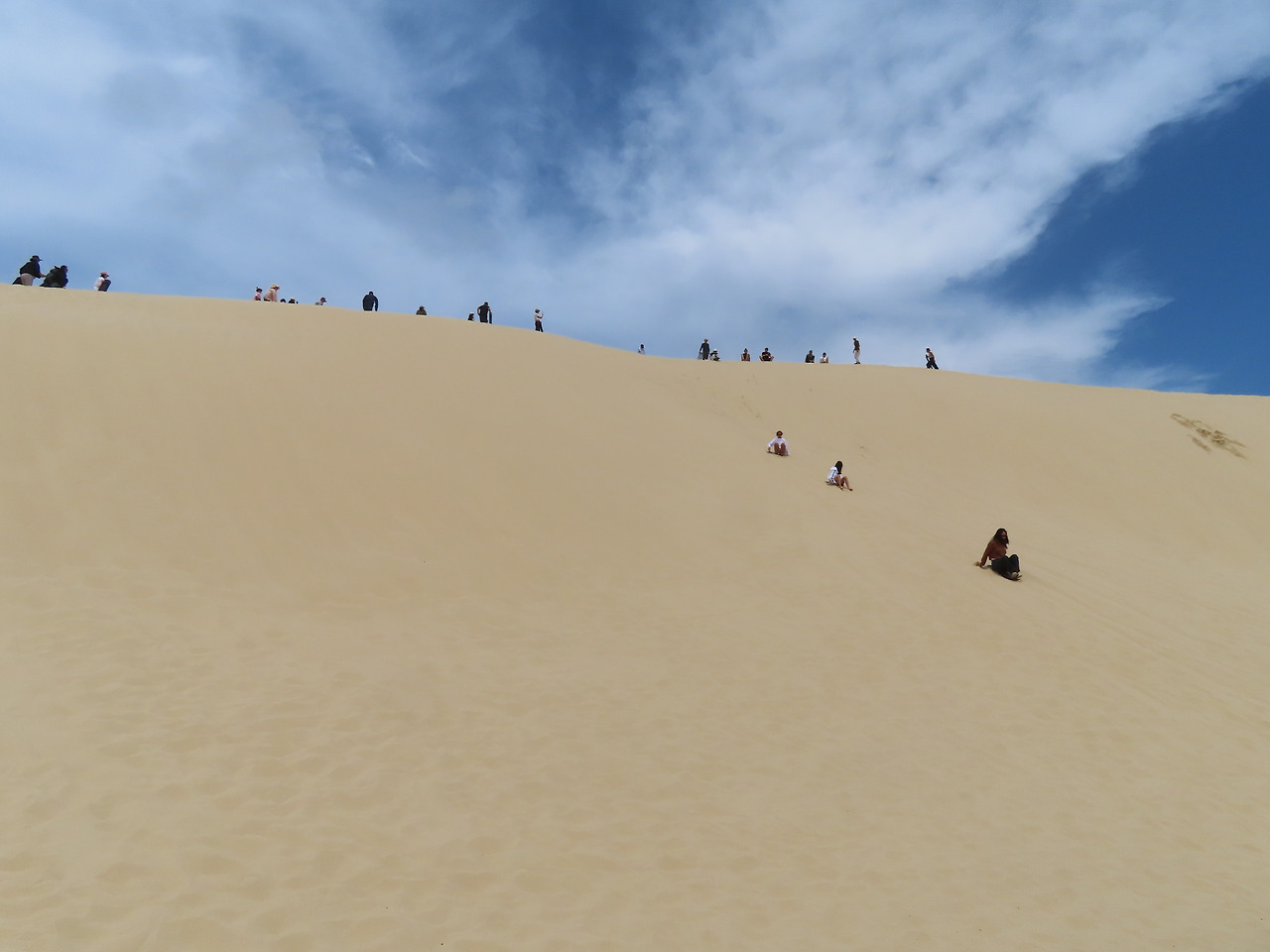 ▼ 페루의 ‘이카사막’에서와는 기본자세부터 사뭇 달랐다. 그때는 엎드려서 미끄러져 내려왔는데, 이번에는 앉아서 내려오는 모양새이다. 슬로프 길이가 짧은데다 경사까지 완만한 탓일 것이다.